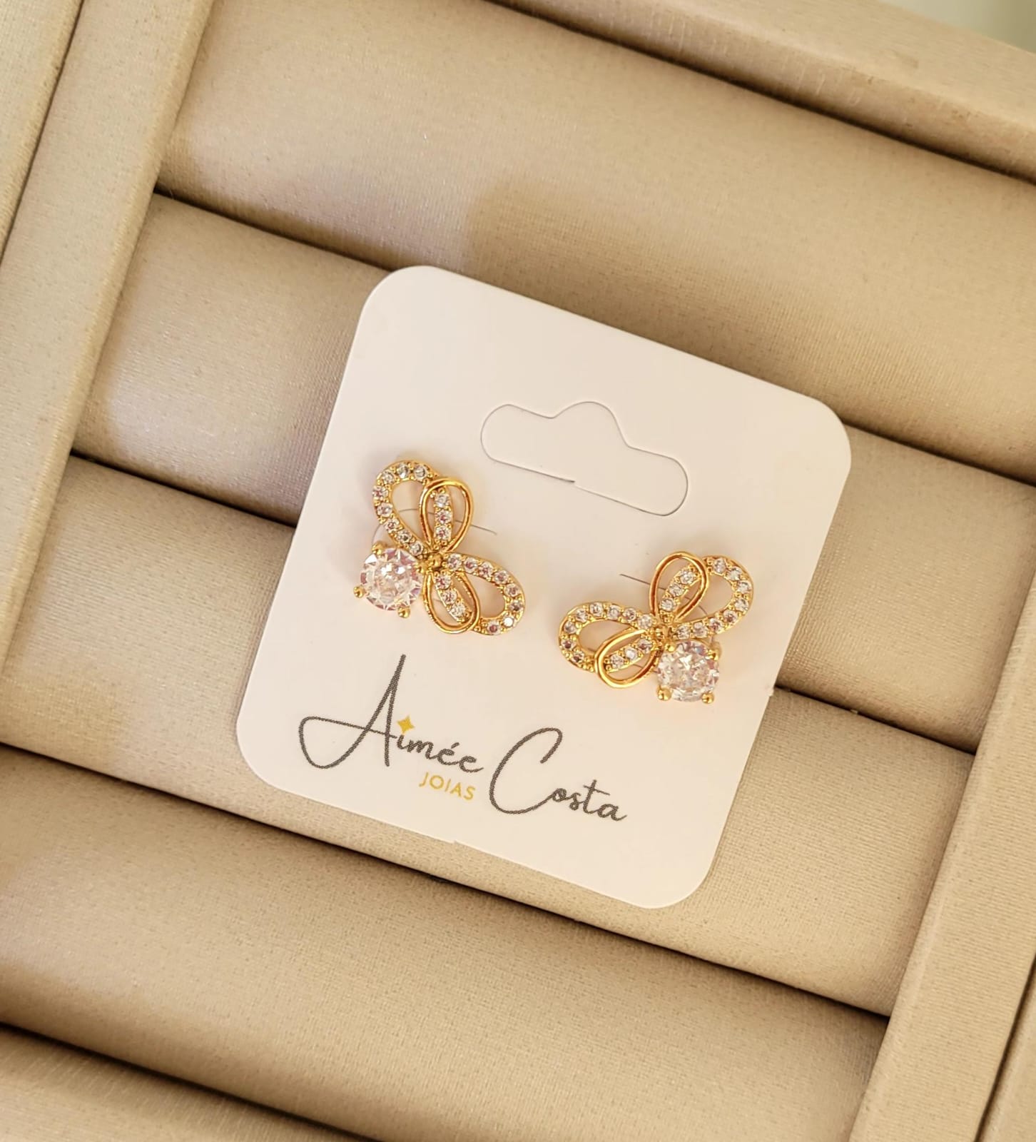 Brinco Duo Laço Point em Banho de Ouro 18k.