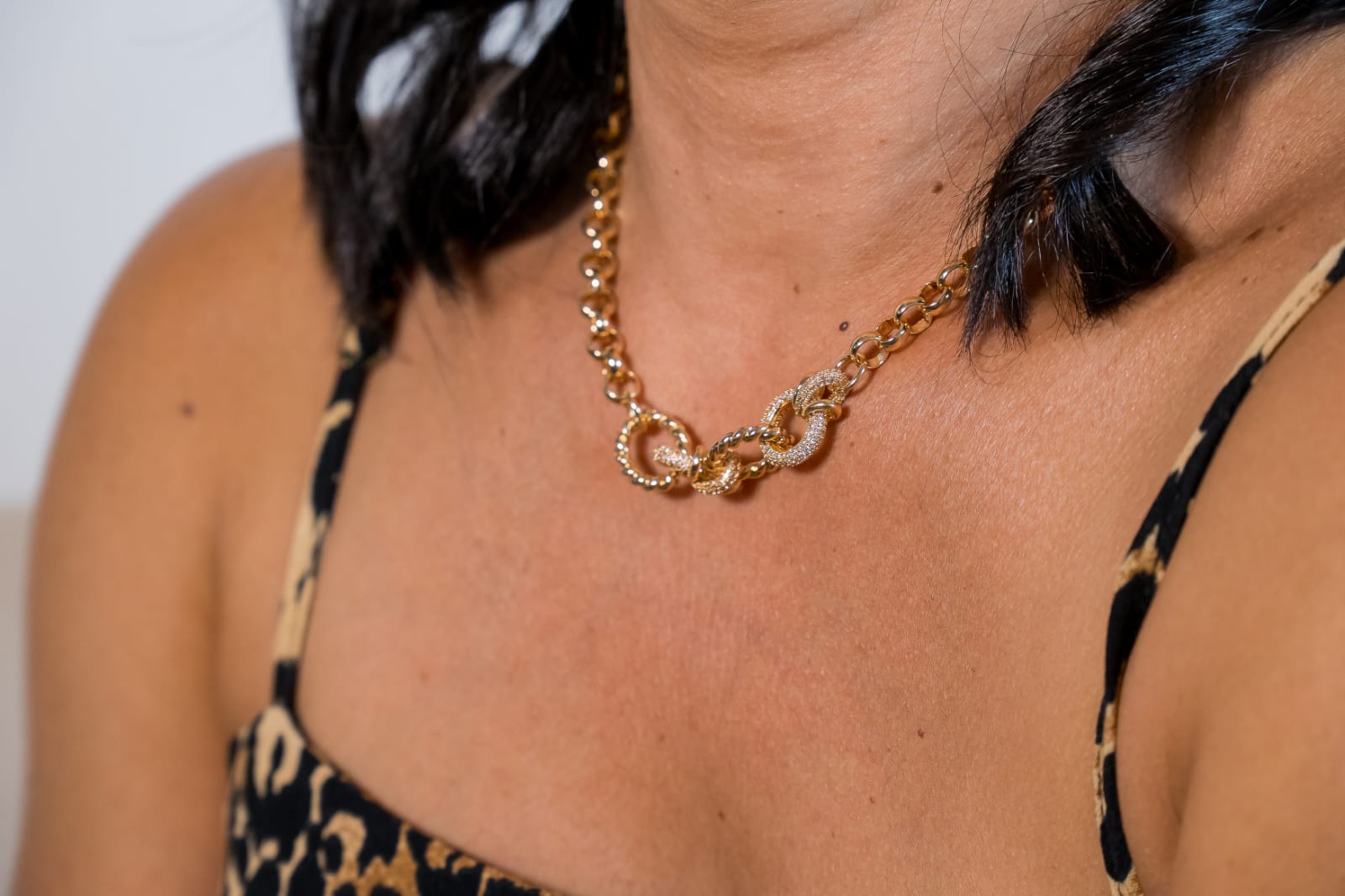 O Colar Elos Twisted Cravejado é uma peça sofisticada que combina design moderno com acabamento delicado. Desenvolvido com elos entrelaçados e cravejados, traz brilho e elegância que valorizam qualquer look. Ideal para quem busca um acessório marcante e versátil, esse colar destaca-se pelo seu acabamento dourado, proporcionando resistência e brilho duradouro. A peça possui tamanho ideal para uso diário, ajustando-se confortavelmente ao pescoço e garantindo destaque ao visual.