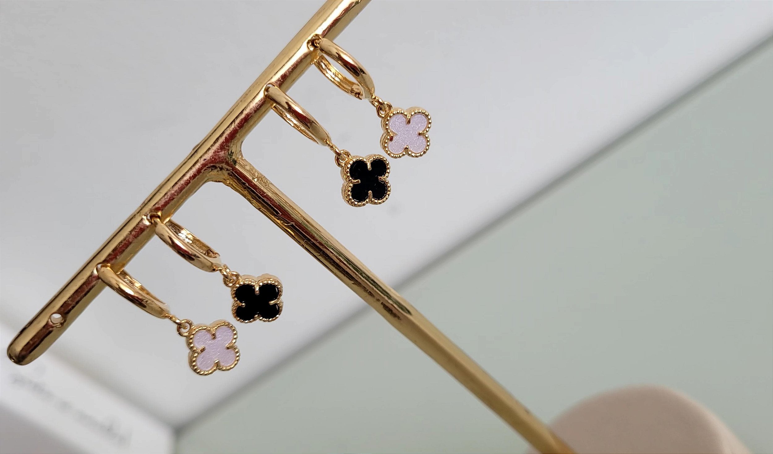 Brinco Argolinha Trevo Madrepérola em Banho de Ouro 18k.