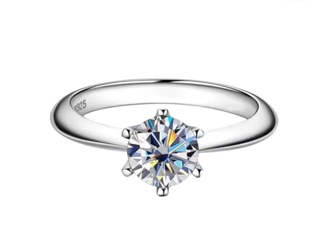 Anel solitário em Prata 925 com acabamento em ródio e moissanite de 1.22 ct, tamanho 15.